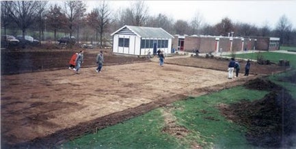 We waren heer in eigen huis geworden, maar we konden nog lang niet boulen. Het terrein bestond uit een grasveld, compleet met werpheuvel en vangkooi voor de honkballers. Geld was er niet dus werd er met een aantal vrijwilligers de graslaag afgeschraapt, de kleilaag afgegraven en achtereenvolgens met zand, gebroken puin, leemzand en grind opgevuld. Er is menig zweetdruppeltje gevallen! Om maar te zwijgen van de afvoer van al dat materiaal naar het gemeentedepot. Maar daarmee was het terrein nog niet af. Bielsen voor de afbakening van het terrein konden op het oude woonwagenterrein worden gehaald. Terrastegels (maar liefst 4.000 stuks) konden bij het voetbalveld worden gehaald. Ongelooflijk hoeveel werk er toen is verzet!